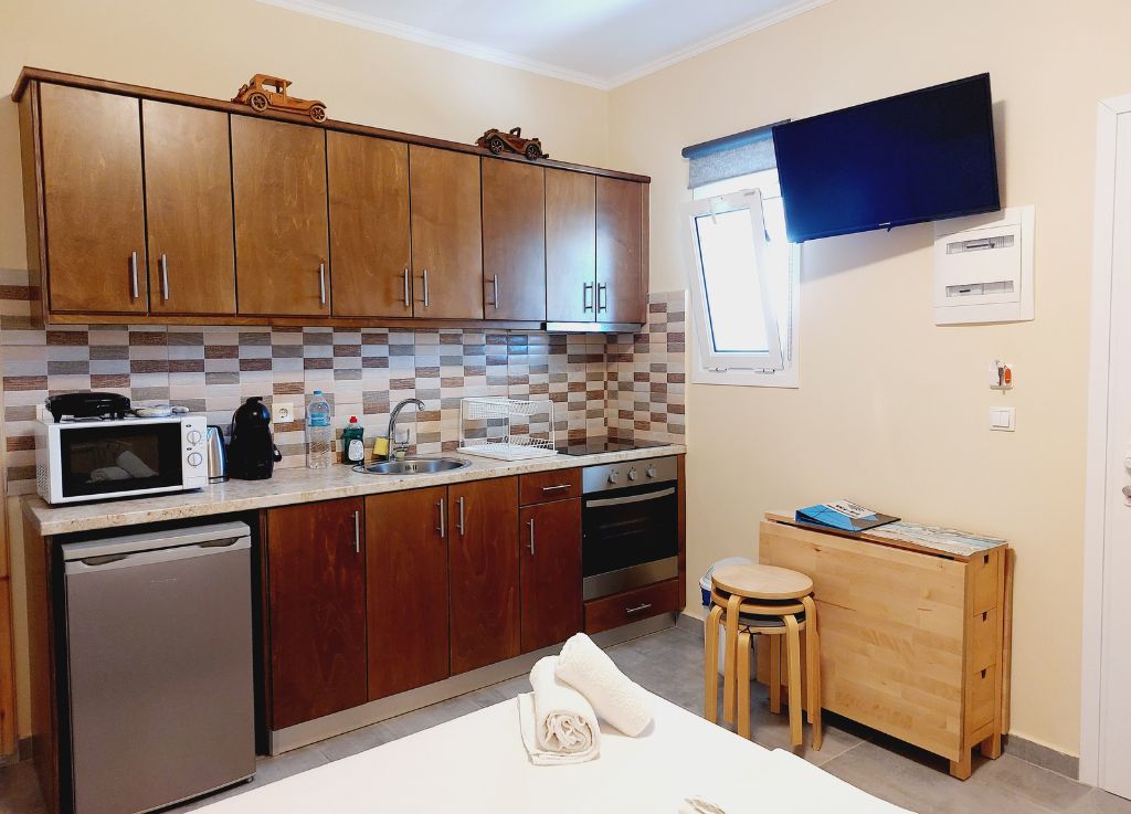 La struttura è un piccolo complesso composto da 4 studio fronte mare, ad Ipsos, la località più movimentata dell’Isola di Corfù. Gli alloggi sono molto semplici e si tratta di monolocali da 2 e 3 posti letto dotati di bagno privato e biancheria da bagno e da letto. L’aria condizionata ha un costo extra di 5 € al giorno per unità abitativa. Gli alloggi non sono dotati di angolo cottura, ma comunque – ad Ipsos – è possibile mangiare nelle varie tavernette/fast food a prezzi abbastanza convenienti.
